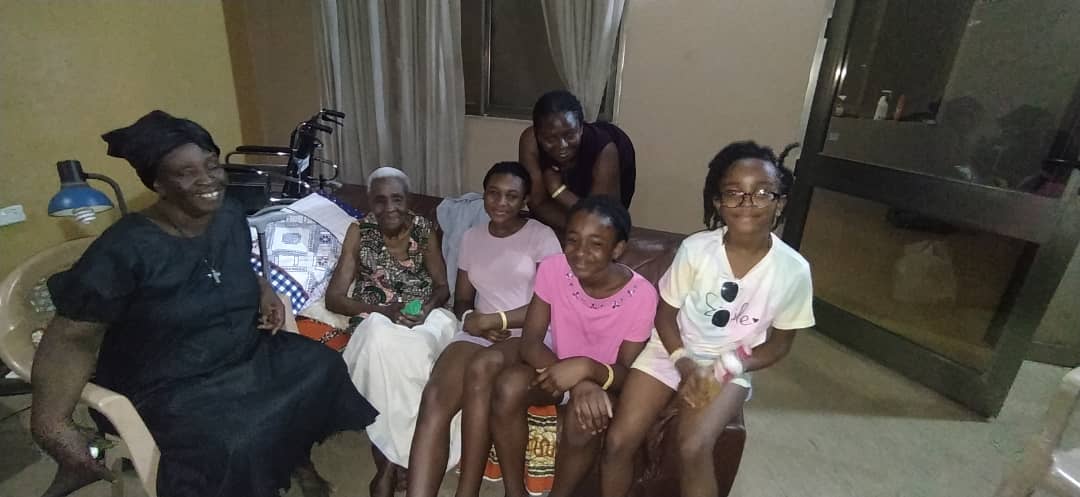Visiting old lady at FanMilk - Nana Akua, Abrefi & Mama Apea